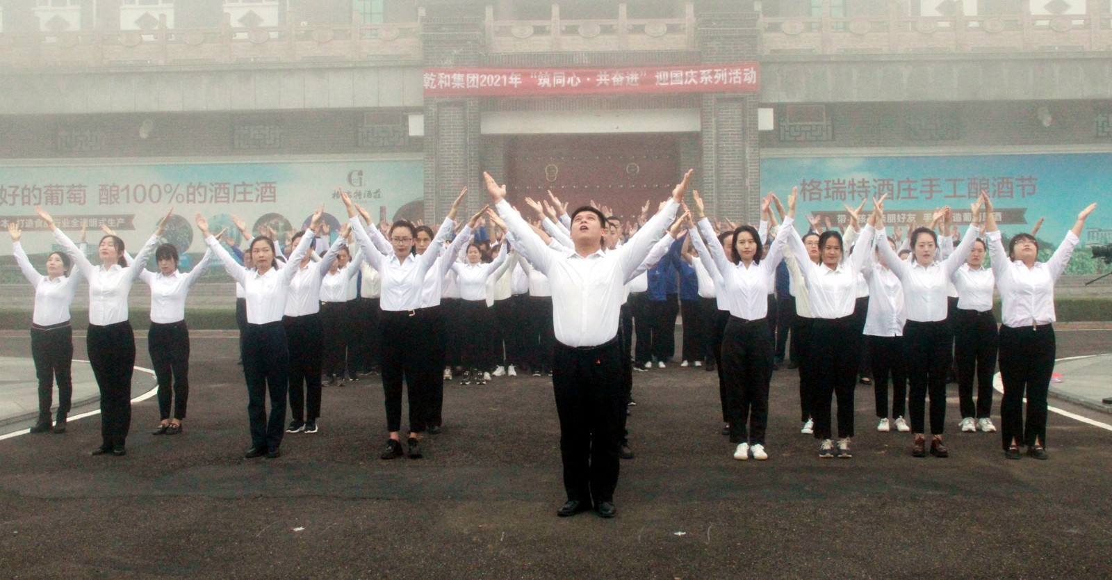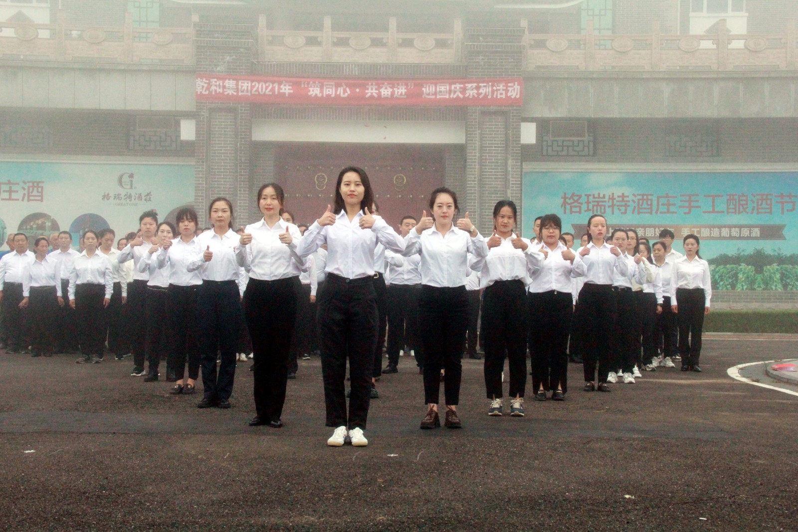 在國慶節(jié)來臨之際,為隆重熱烈地慶祝中華人民共和國成立72周年,進一步加強公司員工的團隊凝聚力,弘揚和培育民族精神,激發(fā)愛國主義情感,于9月30日早8點在格瑞特酒莊廣場開展“ 筑同心·共奮進 ”迎國慶系列活動。格瑞特莊園全體人員參加。