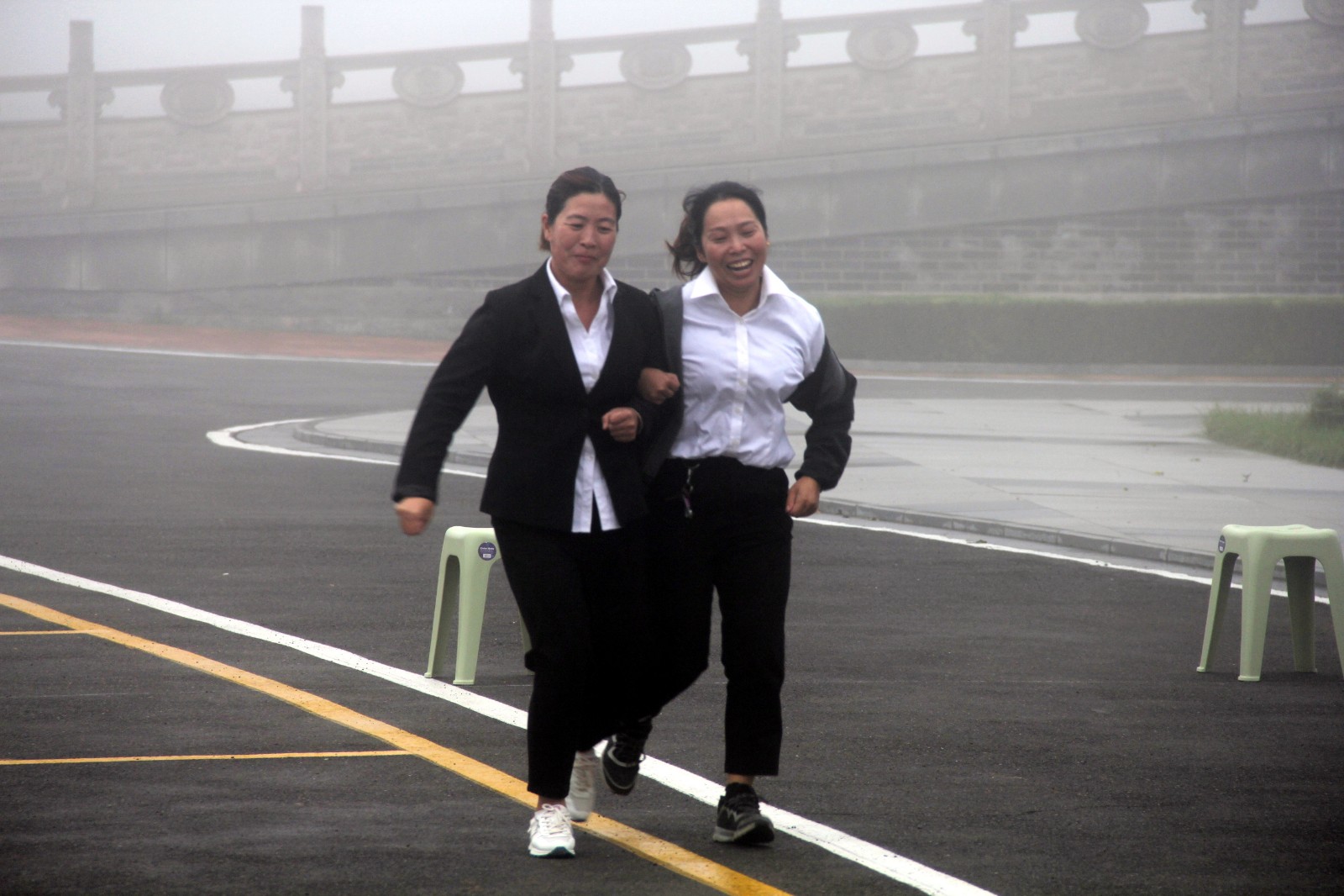 兩人三足游戲一聲令下,選手們兩人并駕齊驅,配合默契,其中,有力求速度的組合:目光堅定直奔終點;也有穩(wěn)中求勝的搭檔:步伐穩(wěn)健,互相激勵。